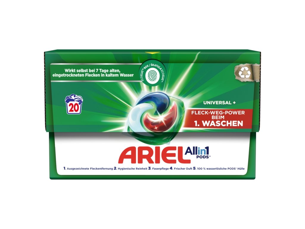Wystarczy wziąć 1 kapsułkę i wrzucić ją do bębna pralki. Włóż brudne ubrania do kapsułki i uruchom cykl prania. Kapsułka Ariel całkowicie rozpuści się w wodzie, uwalniając silny i dwukrotnie bardziej skoncentrowany żel. Aby zapobiec rozpuszczeniu się kapsułek Ariel przed użyciem, należy zawsze szczelnie zamykać opakowanie i dotykać kapsułek suchymi rękami.