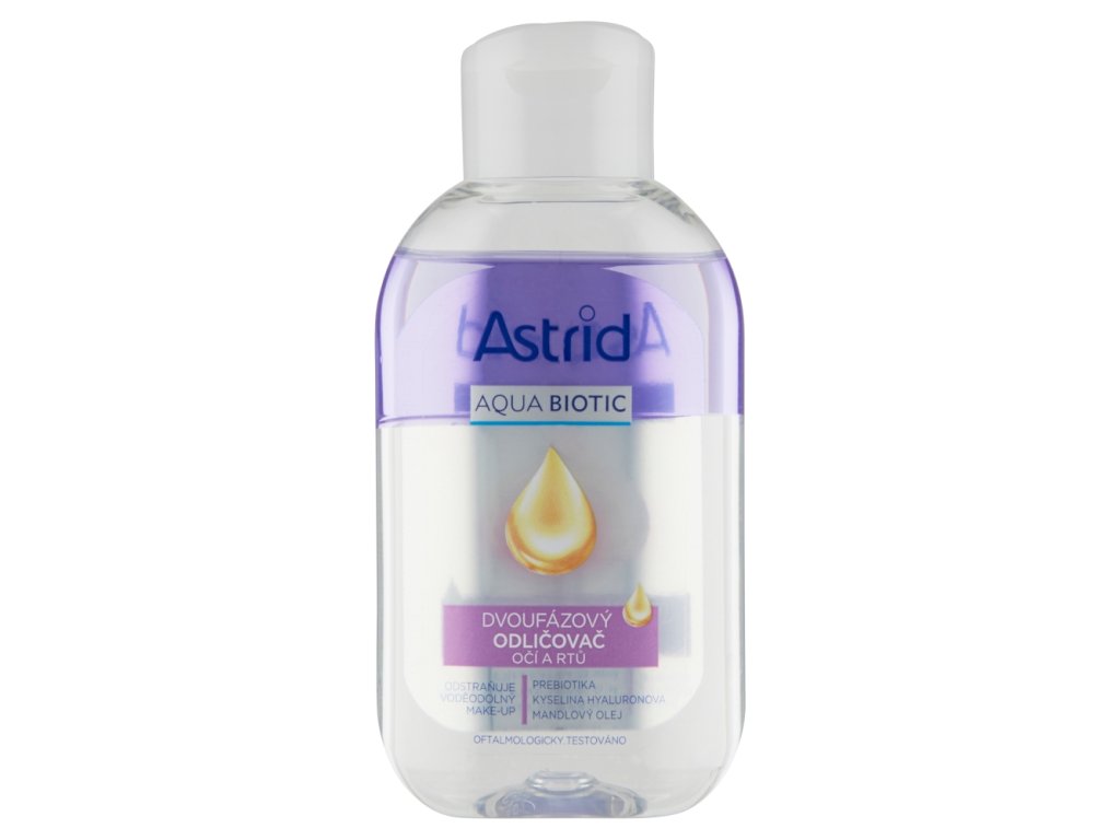 Dwufazowy płyn do demakijażu oczu i ust Astrid Aqua Biotic skutecznie i delikatnie usuwa wodoodporny makijaż oraz delikatnie pielęgnuje okolice oczu i ust. Formuła wzbogacona kwasem hialuronowym i olejkiem migdałowym pomaga utrzymać naturalny poziom nawilżenia skóry, pozostawiając ją idealnie czystą, gładką i chronioną. Zawarte prebiotyki dbają o mikroflorę skóry i wspierają jej zdrową równowagę.