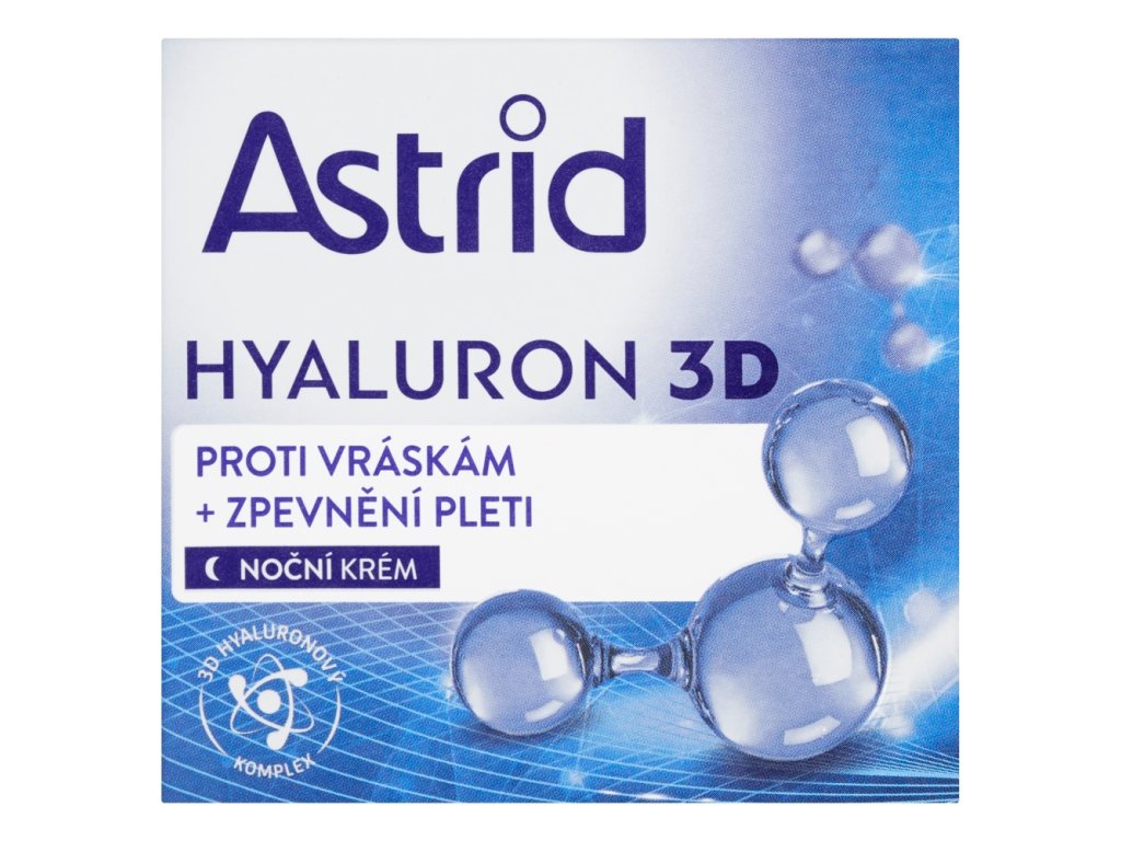 Astrid Hyaluron 3D Firming Night Cream pomaga redukować zmarszczki, poprawiając jędrność i elastyczność skóry. Pomaga redukować głębokość i długość zmarszczek – po aplikacji wygładza wierzchnią warstwę skóry, a w dolnych warstwach poprawia jej elastyczność i jędrność. Dodatkowo, przyczynia się do optymalnego nawilżenia skóry i pozostawia ją aksamitnie miękką i elastyczną. Krem zapewnia skórze odmładzającą pielęgnację podczas snu.