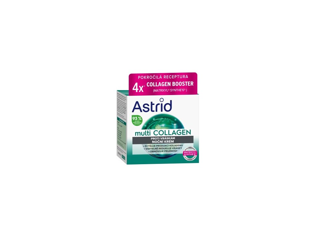 Krem na noc Astrid Multicollagen zawiera 93% składników naturalnych i 4x większe stężenie aktywatora kolagenu. Intensywnie regeneruje skórę w ciągu nocy, redukuje zmarszczki i przywraca jej młodzieńczy wygląd.Parametry dodatkowe