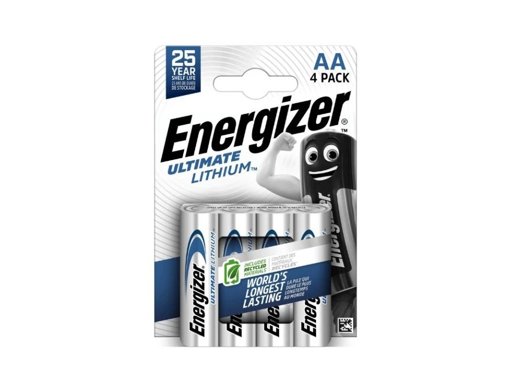 Energizer Ultimate Lithium FR6 AA to zestaw 4 baterii AA o wysokiej wytrzymałości i stabilnej wydajności . Baterie te należą do najwyższej jakości ogniw litowo-jonowych , zaprojektowanych z myślą o zapewnieniu maksymalnej wydajności nawet w trudnych warunkach i długiej żywotności w porównaniu z klasycznymi bateriami alkalicznymi.