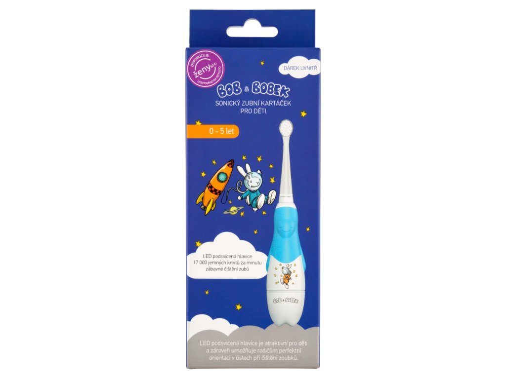 Soniczna szczoteczka elektryczna dla dzieci Bob & Bobek Baby Pink idealnie czyści zęby Twojego dziecka dzięki programowi czyszczenia z częstotliwością do 17 000 ruchów na minutę. Jej delikatne włókna są delikatne dla wrażliwych dziąseł. Posiada wodoodporną rączkę, która zapobiega wyślizgiwaniu się dziecka z rączki, a także timer, który zapewnia optymalny czas czyszczenia. W zestawie znajdują się 2 wymienne końcówki.