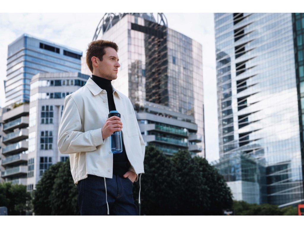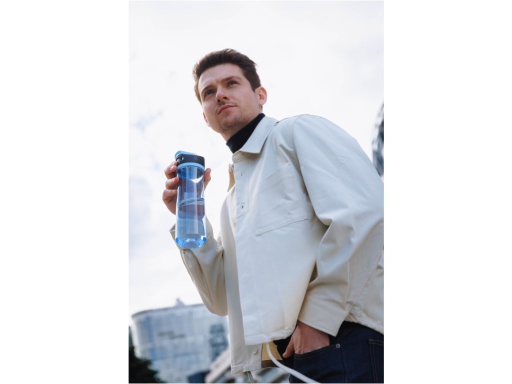 Butelka wykonana jest z innowacyjnego materiału Tritan, który zawiera średnio 50% materiałów pochodzących z recyklingu. Ten wysokiej jakości plastik jest absolutnie idealny do wielokrotnego użytku. Nie musisz martwić się o nieprzyjemne zapachy, które mogłyby osadzać się w butelce, ani nieestetyczne plamy po napojach. Twoja woda będzie zawsze smakować świeżo, a butelka nadal będzie wyglądać świetnie. Butelka Tritan z systemem AUTOSEAL gwarantuje, że nie rozleje się ani nie przecieka w podróży. Obsługa jedną ręką zapewnia maksymalną wygodę nie tylko podczas uprawiania sportu, ale także w podróży. Wystarczy nacisnąć przycisk napoju i zwolnić go, aby automatycznie zamknąć pokrywkę. Pokrywka i korpus butelki nadają się do mycia w zmywarce na górnym poziomie. Blokada przycisku napoju zapobiega przypadkowemu otwarciu podczas podróży. Ucho z klipsem zapewnia wygodne noszenie w podróży. Pasuje do większości uchwytów na kubki w samochodzie i rowerze.Parametry dodatkowe
