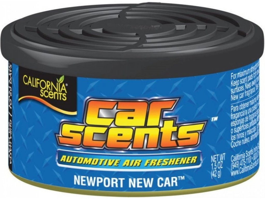 Dzięki stałej konsystencji odświeżacze powietrza California Scents nie stwarzają ryzyka rozlania zapachu, co mogłoby prowadzić do korozji lub uszkodzenia wnętrza samochodu, co zdarza się w przypadku innych zapachów samochodowych w opakowaniu. Oryginalna pełna nazwa tego zapachu to California Scents New Car Car Scents.