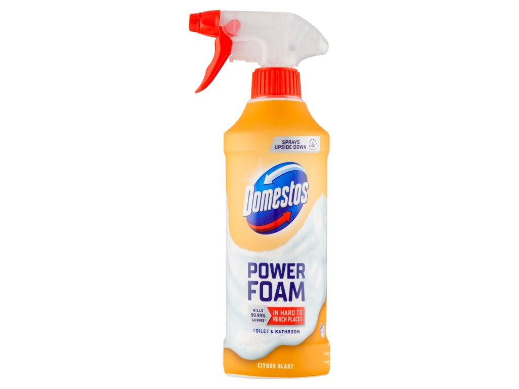 Domestos Power Foam Arctic Foam – pianka czyszcząca do toalet i łazienek 435 ml. Piana w sprayu Domestos Power Foam zapewnia wygodniejsze i skuteczniejsze czyszczenie toalet w zupełnie nowej, rewolucyjnej formie. Specjalnie opracowany spryskiwacz usunie wirusy i bakterie z toalety, nawet w trudno dostępnych miejscach.