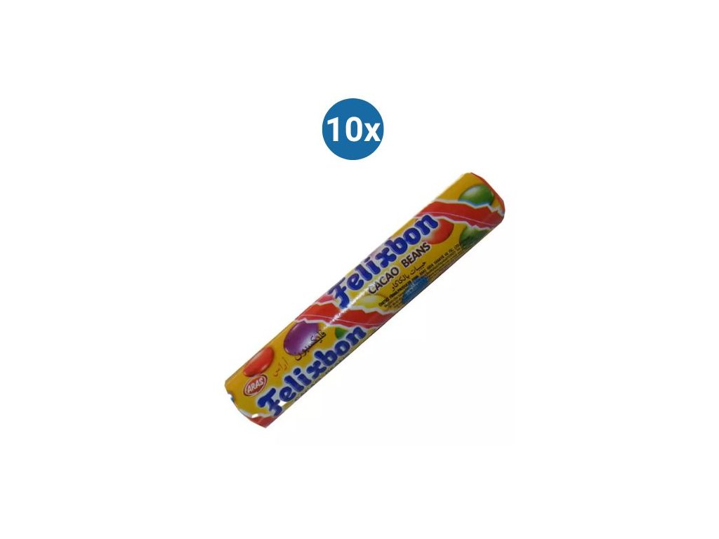 Drażetki kakaowe Felixbon to słodkie przysmaki w postaci małych, kolorowych soczewic o smaku kakaowym. Praktyczne opakowanie o wadze 15 g idealnie sprawdzi się w podróży, w szkole lub jako drobna przekąska w ciągu dnia. Drażetki zachwycają delikatnym kakaowym smakiem i chrupiącą cukrową skorupką.