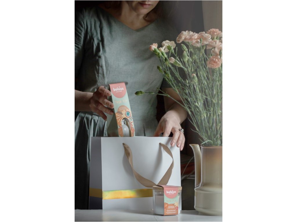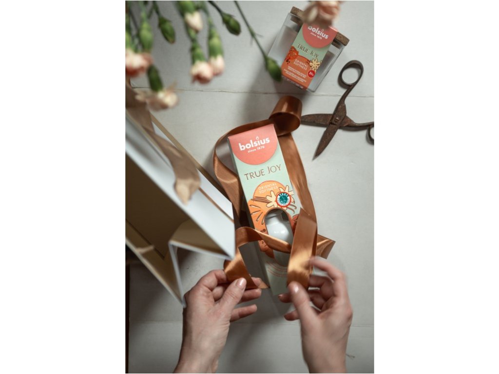 Elegancki dyfuzor zapachowy Bolsius o zapachu True Joy Oriental Softness stanie się ulubioną ozdobą Twojego domu. Dyfuzor zaskoczy Cię swoją kompozycją. Główną rolę odgrywa tu jasna, pudrowa nuta bursztynu przełamana aromatem drewna i subtelnym dodatkiem orientalnego pieprzu. To zapach, który nie przytłacza, a przyciąga wzrok. Dyfuzor wprowadzi do Twojego domu atmosferę inspirowaną naturą. Zapach zacznie się uwalniać po włożeniu patyczków do dyfuzora. Możesz regulować intensywność zapachu, dostosowując liczbę patyczków w dyfuzorze. Dyfuzor nadaje się również na prezent dla bliskiej osoby. Pojemność 80 ml. Czas utrzymywania się zapachu: 4-6 tygodni.Parametry dodatkowe