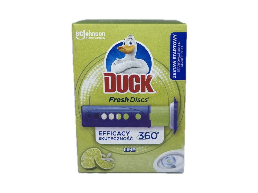 Kaczka Świeża Limonka to żelowe krążki do czyszczenia toalet o zapachu limonki. Krążki te utrzymują higieniczną czystość muszli klozetowej, zapobiegają osadzaniu się kamienia i zapewniają długotrwałą świeżość.