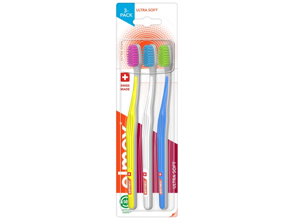 ELMEX Ultra Soft 3-Pack to szczoteczka z najbardziej klasyczną główką do codziennego, porannego i wieczornego szczotkowania zębów. Delikatna dla dziąseł. Usuwa płytkę nazębną. Czyści przebarwienia powierzchniowe. Pomaga chronić zęby przed próchnicą. Ultramiękkie włókna o grubości 0,1 mm zapewniają delikatne czyszczenie.