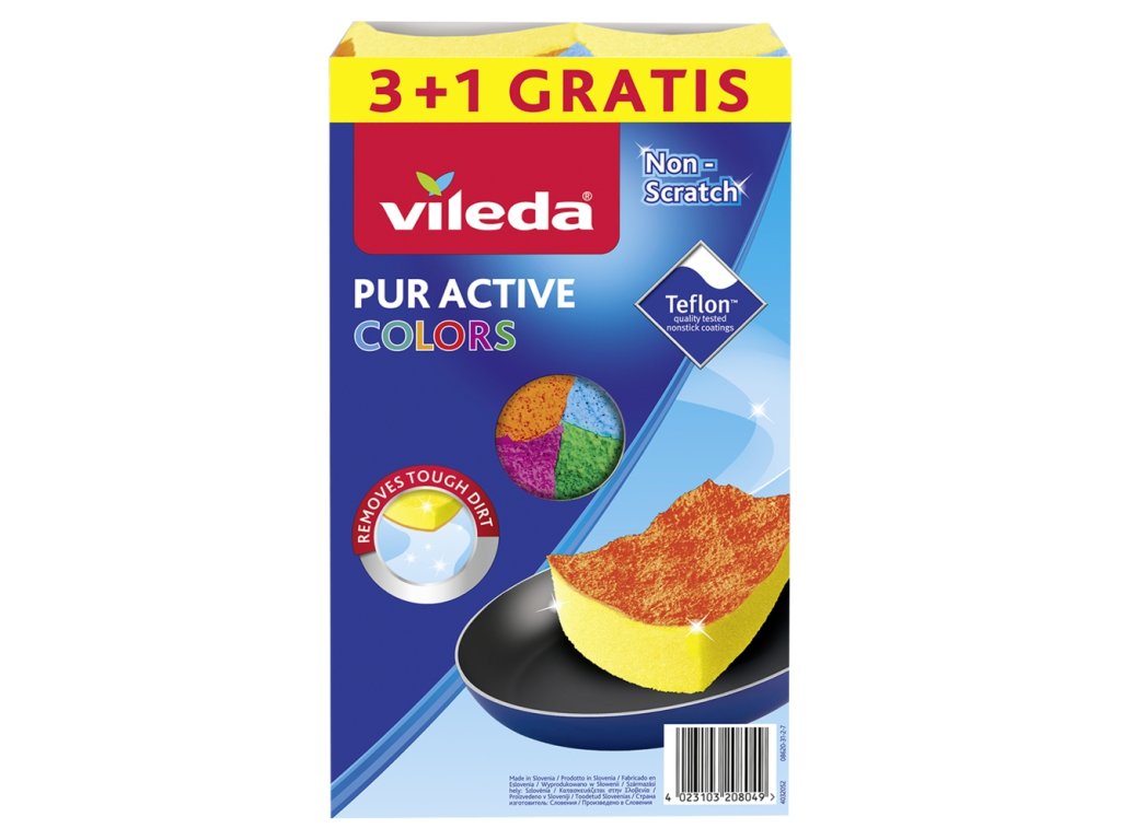 Gąbka Vileda Color Edition Pur Active średnia 3+1 szt. do teflonu