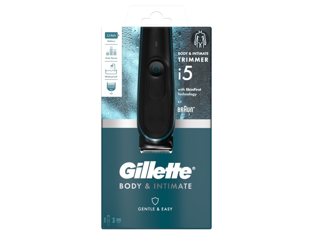 Gillette i5 Body and Intimate Trimmer to pierwszy trymer dla mężczyzn, który umożliwia delikatne i łatwe usuwanie włosów na ciele i w miejscach intymnych.