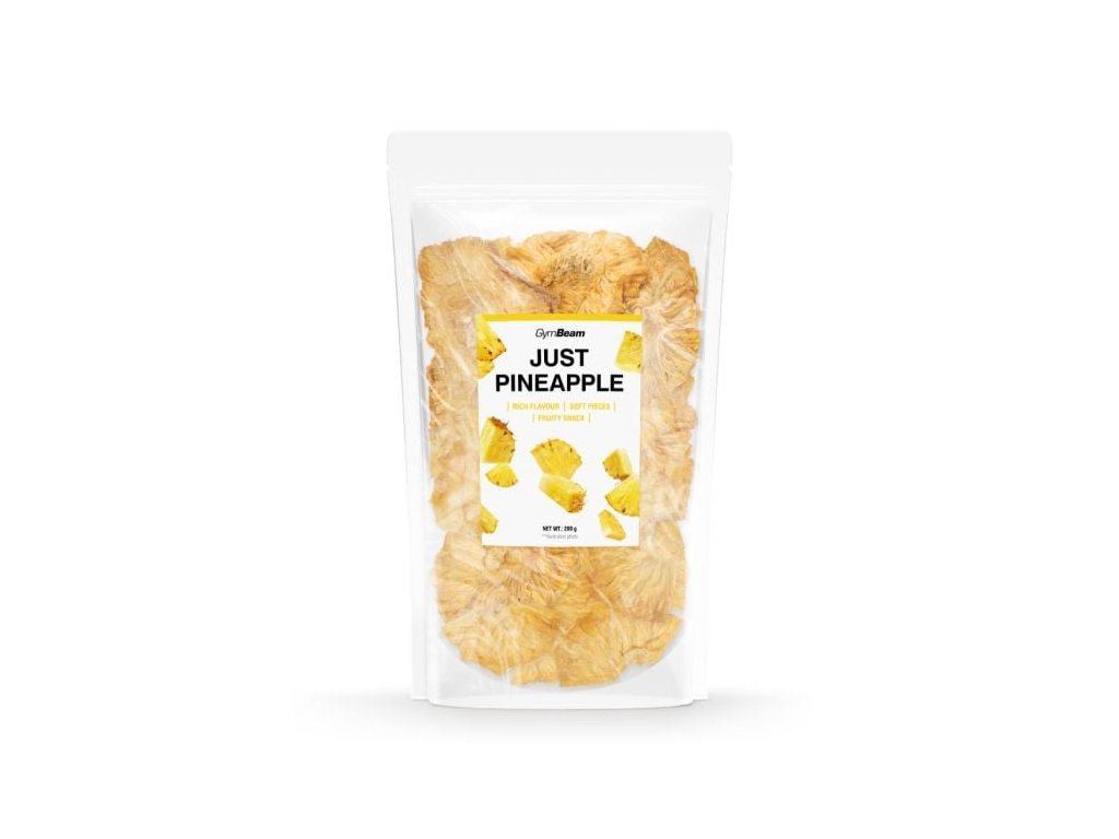 Just Pineapple to miękki suszony ananas o czystym składzie, wytwarzany wyłącznie ze 100% ananasa, bez dodatku cukru, barwników, konserwantów i innych dodatków. Pochodzi z Ghany, gdzie jest przygotowywany z użyciem starannej metody suszenia według tradycyjnej receptury. Suszenie odbywa się w niskich temperaturach, co pozwala zachować jego naturalną słodycz, smak i intensywny, świeży aromat. Charakteryzuje się również wysoką zawartością błonnika i stanowi doskonałą alternatywę dla tradycyjnych słodyczy. Można go spożywać o każdej porze dnia jako szybką przekąskę lub przekąskę.