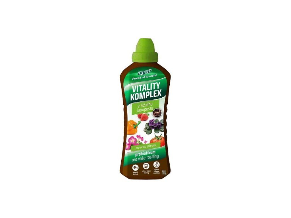 AGRO Vitality Complex to doskonały środek wspomagający odporność roślin, przywracający im witalność i wzrost. Wyjątkowa formuła Vitality Complex przyspiesza regenerację roślin po uszkodzeniach spowodowanych przez choroby i szkodniki oraz wzmacnia odporność na stres. Preparat nadaje się do stosowania w przypadku wszystkich rodzajów roślin doniczkowych, małych owoców, warzyw, roślin ozdobnych i innych roślin ogrodowych. Zalecamy stosowanie tego złożonego preparatu ziołowego na rośliny osłabione, nierosnące i zaniedbane. Co wyróżnia Vitality Complex i co zawiera? specjalny ekstrakt z wermikompostu, który powstaje dzięki działalności dżdżownic kalifornijskich, jest źródłem enzymów i stymulatorów, które ułatwiają (przyspieszają) transport składników odżywczych z gleby do roślin oraz procesy zachodzące w roślinach, poprawiają wykorzystanie składników odżywczych z gleby i przyczyniają się do zwiększenia powierzchni korzeni, a co za tym idzie również nadziemnych części roślin kwasy huminowe i fulwowe zmniejszają zmęczenie gleby i jej zubożenie, stwarzają warunki do powstawania próchnicy, udostępniają składniki odżywcze roślinom po zastosowaniu następuje szybki przyrost masy zielonej i systemu korzeniowego dawkowanie: 15 ml na 1 l wody w celu przywrócenia witalności uszkodzonym roślinom lub na 1,5 l wody w przypadku oprysku dolistnegoParametry dodatkowe