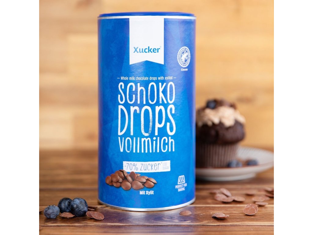 Czekoladowe dropsy z pełnego mleka to kawałki mlecznej czekolady bez dodatku cukru , słodzone jedynie ksylitolem. Czekoladowe dropsy idealnie nadają się do wypieku ciasteczek, muffinek, ciast, przygotowywania polewy czekoladowej, domowego musli, ale nadają się również do aromatyzowania owsianki lub jogurtu.