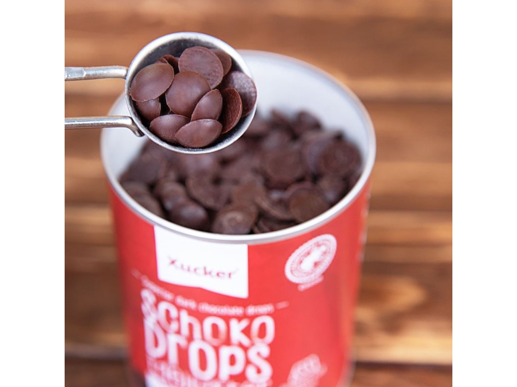 Ciemne Krople Czekoladowe to kawałki gorzkiej czekolady bez dodatku cukru , słodzone jedynie ksylitolem. Spożywanie produktów zawierających ksylitol zamiast cukru prowadzi do mniejszego wzrostu poziomu glukozy we krwi po spożyciu w porównaniu z produktami zawierającymi cukier. Kawałki czekolady idealnie nadają się do pieczenia ciasteczek, muffinek, ciast, przygotowywania polewy czekoladowej, domowego musli, ale nadają się również do aromatyzowania owsianki lub jogurtu.