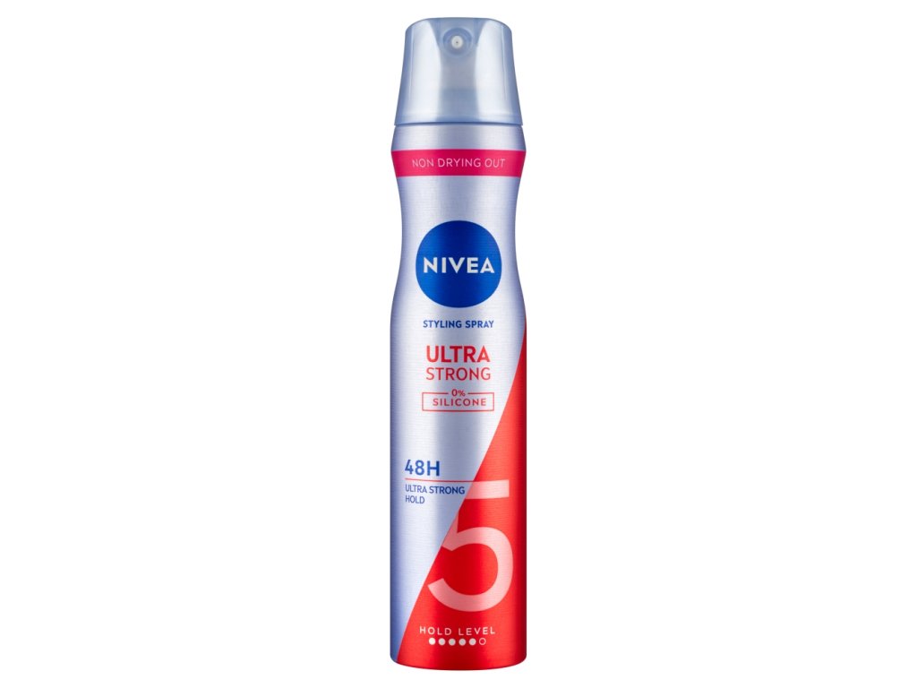 Lakier do włosów Nivea Ultra Strong utrwali Twoją fryzurę do 48 godzin, ochroni Twoje włosy przed promieniowaniem UV i jednocześnie doskonale je odżywi.
