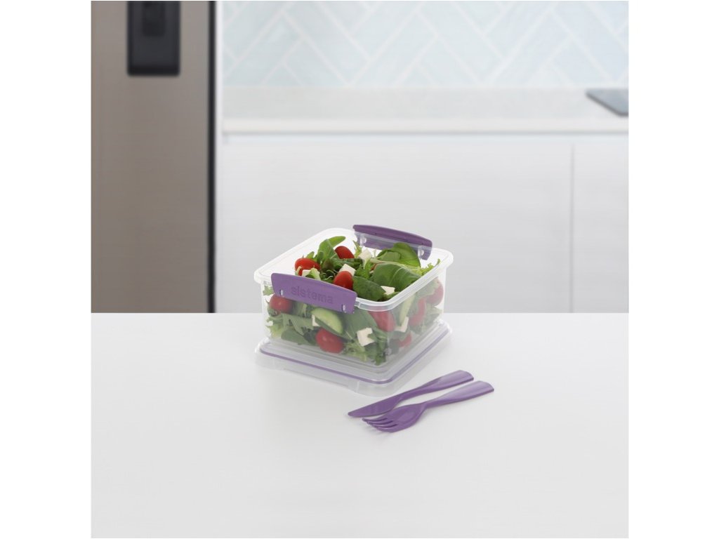 Lunchbox Sistema ze sztućcami 1,2 l idealnie nadaje się do transportu lunchu i przekąsek do pracy, szkoły lub parku, jednocześnie pomagając ograniczyć zużycie plastikowych toreb. Zintegrowany klips na nóż i widelec na pokrywce eliminuje konieczność noszenia osobnych sztućców. Zalety: • Zintegrowane sztućce • Łatwe zamykanie klipsami • Elastyczne uszczelnienieParametry dodatkowe