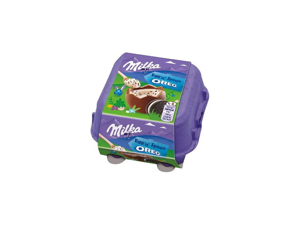 Kawałki ciasteczek kakaowych (4%) z nadzieniem mlecznym o smaku waniliowym (39%) w mlecznej czekoladzie alpejskiej.Parametry dodatkowe