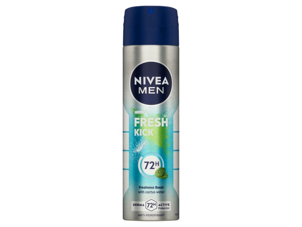 Zachowaj urok w każdej sytuacji. Dzięki antyperspirantowi w sprayu Fresh Kick dla mężczyzn nie będziesz już odczuwać nieprzyjemnych zapachów ani plam potu. Świeży zapach mięty będzie Ci towarzyszył zarówno na treningu sportowym, jak i na ważnym spotkaniu biznesowym. Chroń skórę przed potem do 48 godzin i zachowaj świeżość w każdej sytuacji: antyperspirant w sprayu NIVEA MEN Fresh Kick dla mężczyzn.