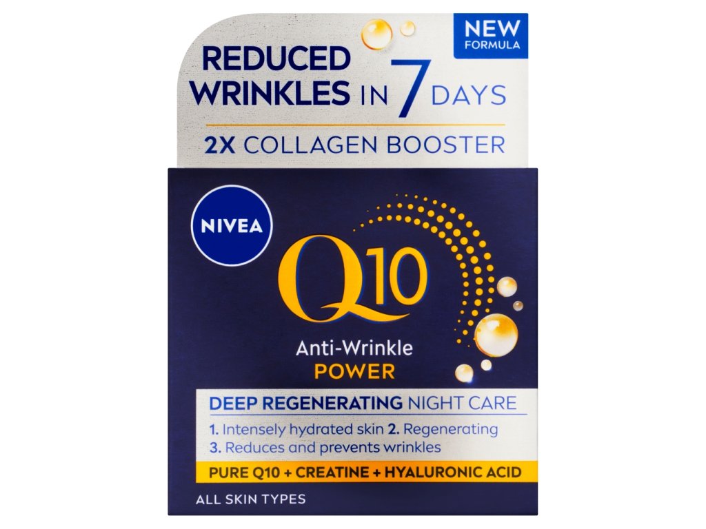 Obudź się piękniejsza każdego dnia. Krem na noc z koenzymem Q10 w 100% identycznym ze skórą, idealnie harmonizuje z Twoją skórą i skutecznie zwalcza zmarszczki od wewnątrz. Nawilża, regeneruje i wyrównuje nierówności. Zmarszczki są widocznie zredukowane, a skóra wygląda świeżo i młodzieńczo. Wypróbuj pielęgnującą formułę, odpowiednią również dla skóry wrażliwej: Ujędrniający krem przeciwzmarszczkowy na noc NIVEA Q10 POWER.