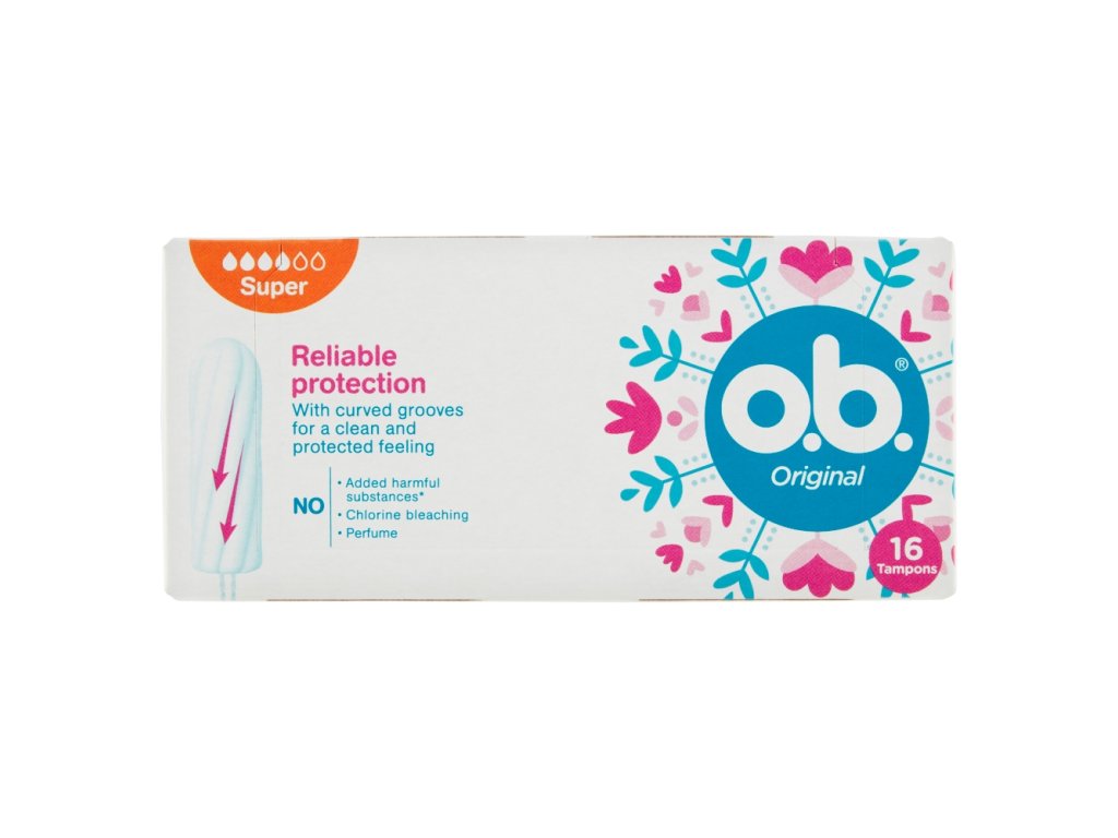 Tampony Ob ze skręconymi rowkami zostały specjalnie opracowane, aby skutecznie kierować płyn do wnętrza tamponu. Zapewniają niezawodną ochronę. Powierzchnia Silk Touch ułatwia aplikację. Tampony ob® Original Super nadają się na dni z obfitym krwawieniem .
