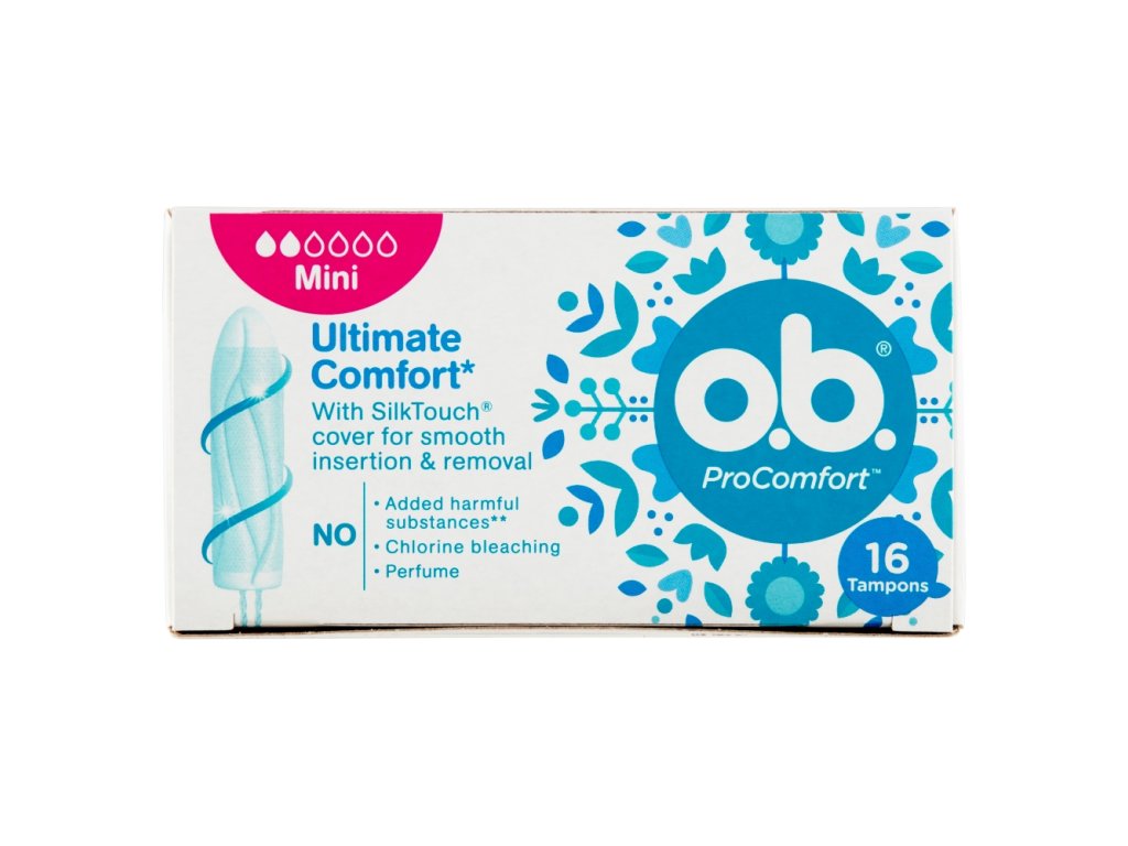 Tampony ob® ProComfort™ z technologią Dynamic Fit™ i unikalną powierzchnią SilkTouch™ zostały zaprojektowane z myślą o maksymalnym komforcie i najskuteczniejszej ochronie, jaką kiedykolwiek oferowano w ofercie tamponów ob®. Ich gładka powierzchnia ułatwia aplikację, dzięki czemu tampony ob® ProComfort™ są bardzo łatwe i wygodne w użyciu, nawet w dni o niewielkim krwawieniu lub gdy dopiero zaczynasz używać tamponów.