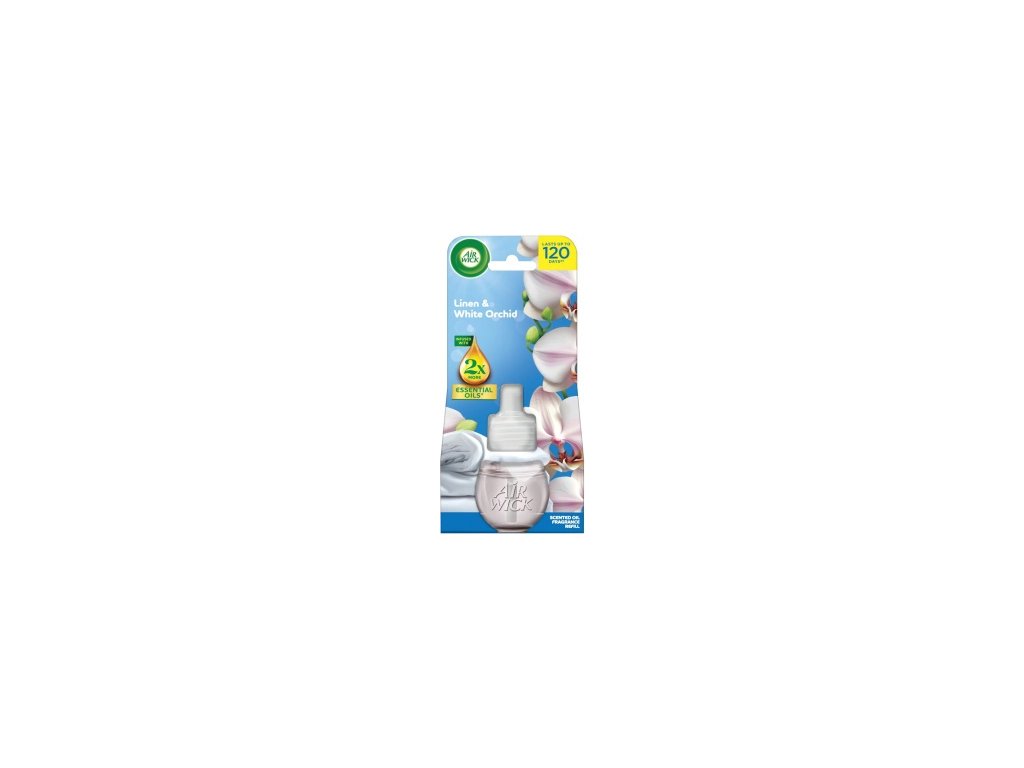 Wkład Air Wick Essential Oils Linen and White Orchid (19 ml) przeznaczony jest do elektrycznych odświeżaczy powietrza i wnosi do Twojego domu świeży i delikatnie kwiatowy zapach.Parametry dodatkowe