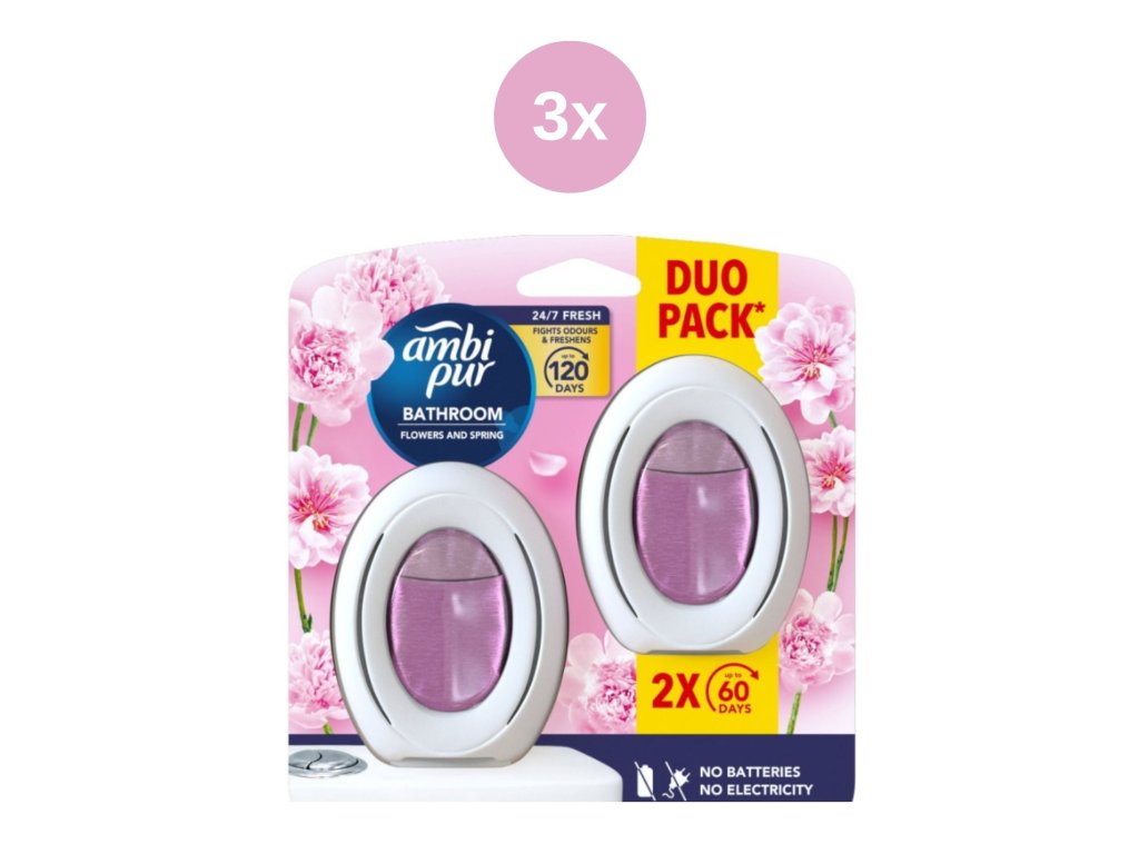 Odświeżacz powietrza do łazienki Ambi Pur Kwiaty i Wiosna, 3 x 2 szt./opakowanie.