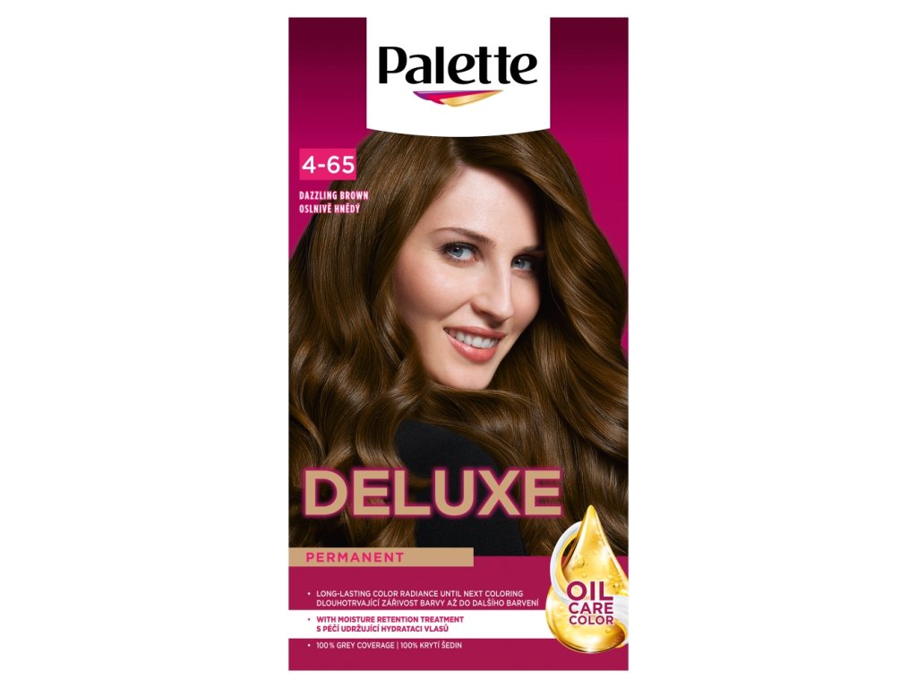 Luksusowa formuła Palette Deluxe Shimmering Browns zawiera skoncentrowane pigmenty koloryzujące, które zapewniają promienny, brązowy kolor, oraz mieszankę pielęgnujących olejków , które pielęgnują włosy podczas koloryzacji. Nowa kuracja Palette Deluxe zawiera siedem luksusowych olejków i nadaje włosom olśniewający połysk oraz trwałe brązowe tony , które olśniewają w każdej sytuacji – w biurze lub na parkiecie.