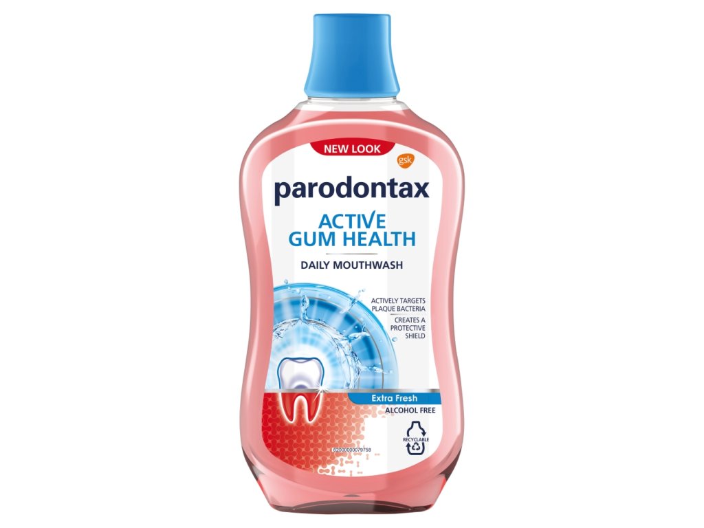 Płyn do płukania jamy ustnej Parodontax Daily Gum Care Extra Fresh pomaga usuwać płytkę nazębną między zębami i wzdłuż linii dziąseł. Zdrowe dziąsła to FUNDAMENT zdrowej jamy ustnej. Usuwanie płytki nazębnej z linii dziąseł i przestrzeni między zębami pomaga zapobiegać nawrotom problemów z dziąsłami. Stosuj płyn do płukania jamy ustnej Parodontax Daily Gum Care w ramach codziennej pielęgnacji jamy ustnej. Udowodniono naukowo, że pomaga on utrzymać zdrowsze dziąsła i zęby.