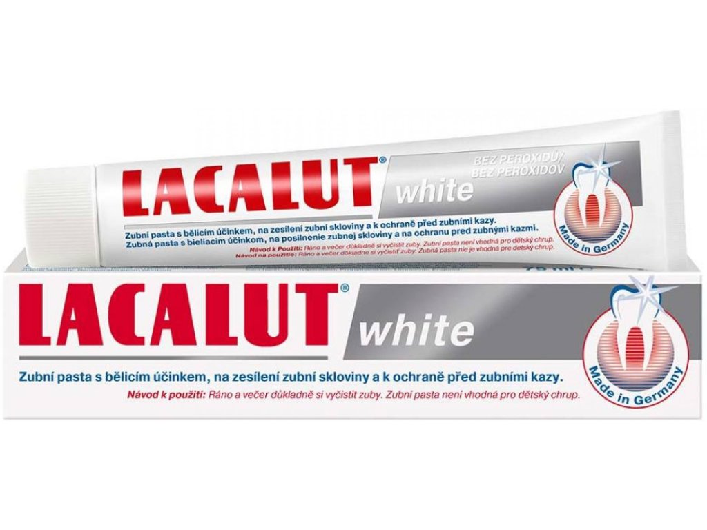 Pasta do zębów Lacalut White Whitening to opracowana medycznie pasta do zębów o działaniu polerującym i wybielającym. Pasta do zębów Lacalut White delikatnie usuwa przebarwienia szkliwa spowodowane paleniem tytoniu, dietą, piciem herbaty i czerwonym winem. Codzienne stosowanie pasty pomoże Ci konsekwentnie i delikatnie usunąć przebarwienia, które powstały z czasem pod wpływem tych czynników. Składniki czyszczące delikatnie pielęgnują zęby. Szkliwo zębów jest wzmocnione fluorem, a jednocześnie chronione przed próchnicą. Dziąsła są również wzmocnione, a krwawienie ustanie. Pasta nie zawiera nadtlenków ani cukru.