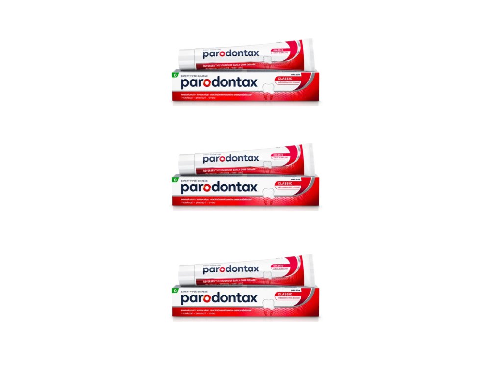Pasta do zębów Parodontax Classic została opracowana specjalnie do codziennej pielęgnacji dziąseł. Dzięki swojej formule pomaga fizycznie usuwać płytkę nazębną wzdłuż linii dziąseł – główną przyczynę podrażnień i krwawienia dziąseł – i przyczynia się do zdrowszego wyglądu. Pasta jest również odpowiednia dla osób, które preferują pielęgnację bez fluoru.