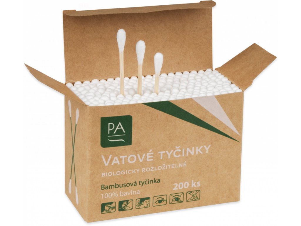 Patyczki higieniczne 200 szt. do codziennej higieny wykonane ze 100% bawełny i bambusa, przyjazne dla środowiska.