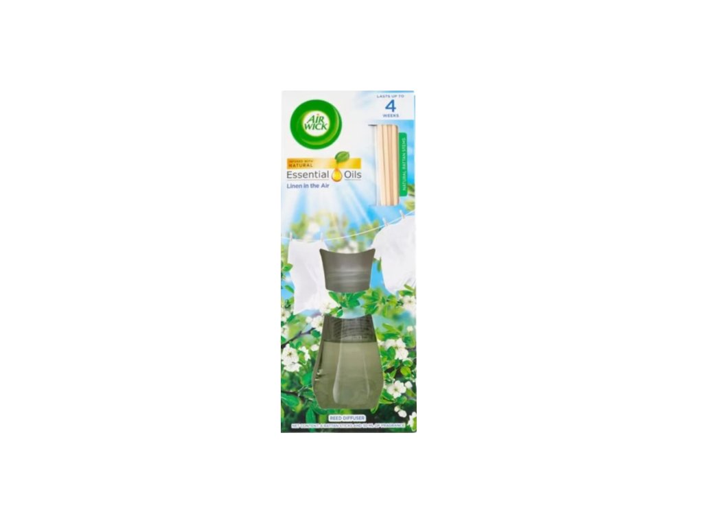 Dyfuzor Air Wick wykorzystuje naturalne patyczki rattanowe, które delikatnie uwalniają piękne zapachy. Stwórz przyjemną atmosferę w swoim domu dzięki naturalnym zapachom i eleganckiemu designowi.