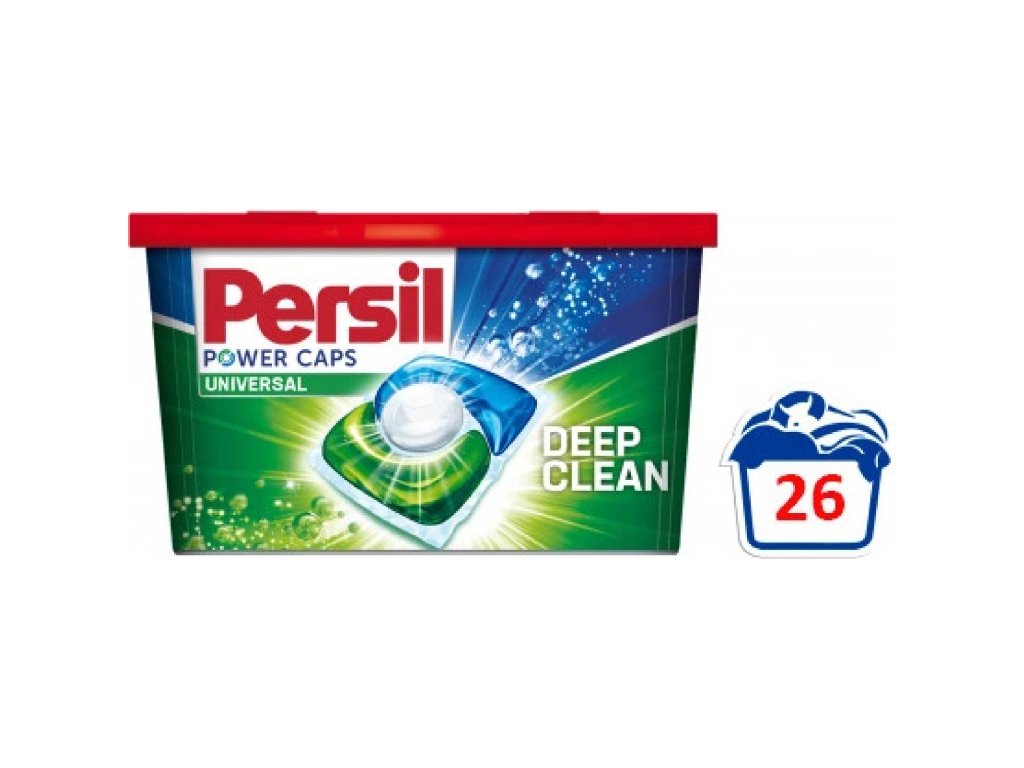 Persil Power Caps 26 szt. Uniwersalne kapsułki do prania o wadze 390 g z technologią Deep Clean zawierają unikalną kombinację składników aktywnych, które pomagają w usuwaniu uporczywych plam.