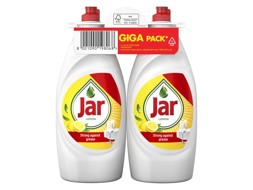 Płyn do mycia naczyń Jar Lemon ma moc czyszczenia, której zawsze możesz zaufać. Niezależnie od tego, czy myjesz talerze i szklanki, czy garnki i patelnie – skuteczna formuła Jar z łatwością usuwa tłuszcz, niezależnie od stopnia zabrudzenia naczyń. Każda kropla czyści wiele tłustych naczyń, dzięki czemu oszczędzasz pieniądze. Dostępny jest w różnych pojemnościach i w szerokiej gamie zapachów, takich jak cytryna, pomarańcza, jabłko i granat. Wypróbuj również kapsułki do zmywarki automatycznej Jar All in One, aby Twoje naczynia i zmywarka lśniły czystością. Zaprojektowany i przetestowany do użytku ze wszystkimi wiodącymi modelami zmywarek.