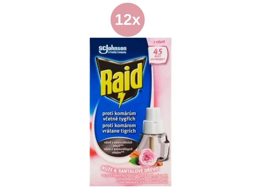 Płynny inhalator przeciw komarom Raid, wymienny wkład do inhalatora elektrycznego, róża i drzewo sandałowe, 12x45 nocy, 27 ml