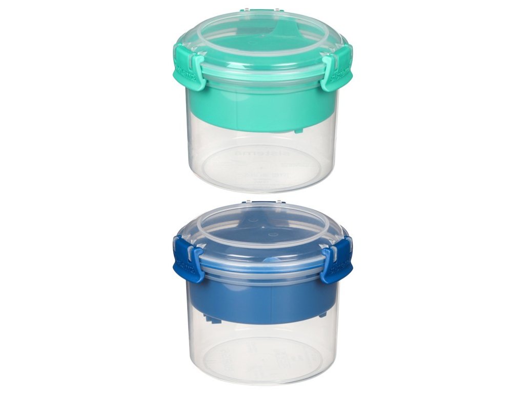 Słoik śniadaniowy Sistema z miską i łyżeczką o pojemności 530 ml to praktyczny słoik śniadaniowy, który pozwoli Ci cieszyć się pożywnym śniadaniem nie tylko w podróży. Dzięki oddzielnym przegródkom i wyjmowanej tacce płatki pozostaną chrupiące, a pozostałe składniki świeże aż do spożycia. Zintegrowana łyżeczka eliminuje również konieczność noszenia ze sobą dodatkowych sztućców. Produkt nie jest wodoodporny. Zalety: Odpowiedni dla dzieci. Oddzielne przegródki na płatki i inne składniki. Wyjmowana tacka dla zachowania świeżości. Zintegrowana łyżka. Łatwe zamykanie: klips Sistema® i elastyczna uszczelka.Parametry dodatkowe