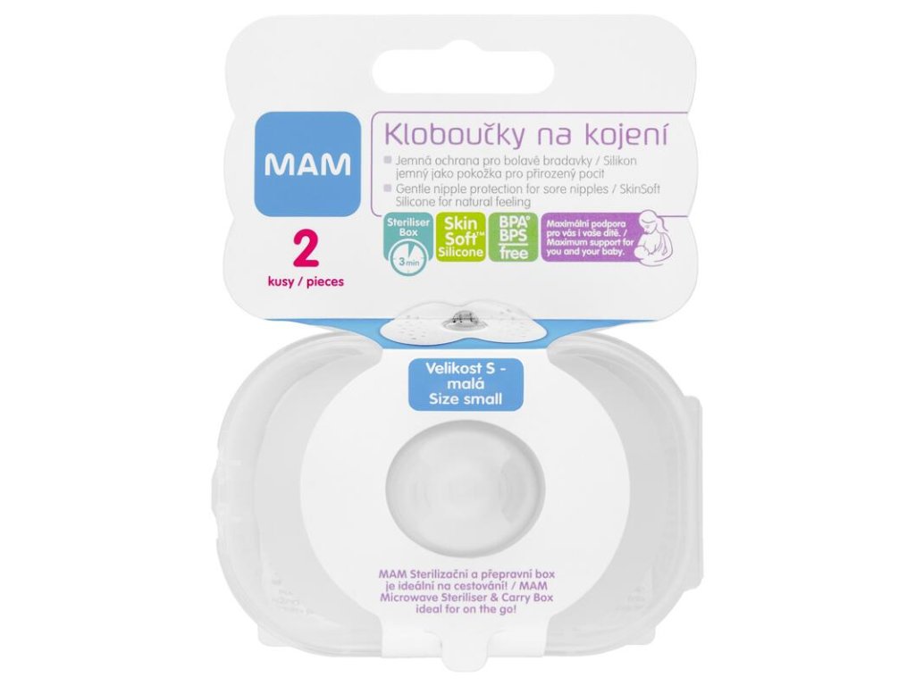 Lejki piersi MAM zapewniają krótkotrwałą pomoc w karmieniu piersią. Lejki piersi MAM zapewniają krótkotrwałą pomoc w karmieniu piersią. Delikatna ochrona podrażnionych brodawek sutkowych. Unikalny kształt pozwala dziecku poczuć skórę matki. Silikon jest miękki jak skóra matki, co zapewnia naturalne odczucia podczas karmienia piersią. Specjalna struktura powierzchni pozwala na przepływ powietrza między dzieckiem a lejkiem, dzięki czemu jest on bardzo delikatny dla skóry dziecka. W zestawie znajduje się praktyczne pudełko do sterylizacji – sterylizacja w kuchence mikrofalowej trwa 3 minuty. Rozmiar S – mały (17 mm). Opakowanie zawiera 2 sztuki.Parametry dodatkowe