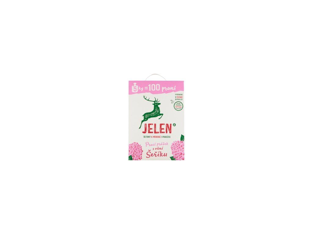 Zawiera wyłącznie naturalne substancje, które szybko, całkowicie i naturalnie rozkładają się w wodzie. Nie zawiera żadnych substancji syntetycznych, alergizujących perfum, sztucznych barwników, wybielaczy ani fosforanów, ale dużą ilość prawdziwego mydła z tłuszczów. Lata dowiodły, że Jelen to niezawodny środek na uporczywe zabrudzenia i plamy, takie jak wiśnie czy czekolada, które dzieci potajemnie zjadają w kołdrach. Jelen dobrze pierze zarówno kolorowe, jak i białe ubrania. Wystarcza na 60 pralek.