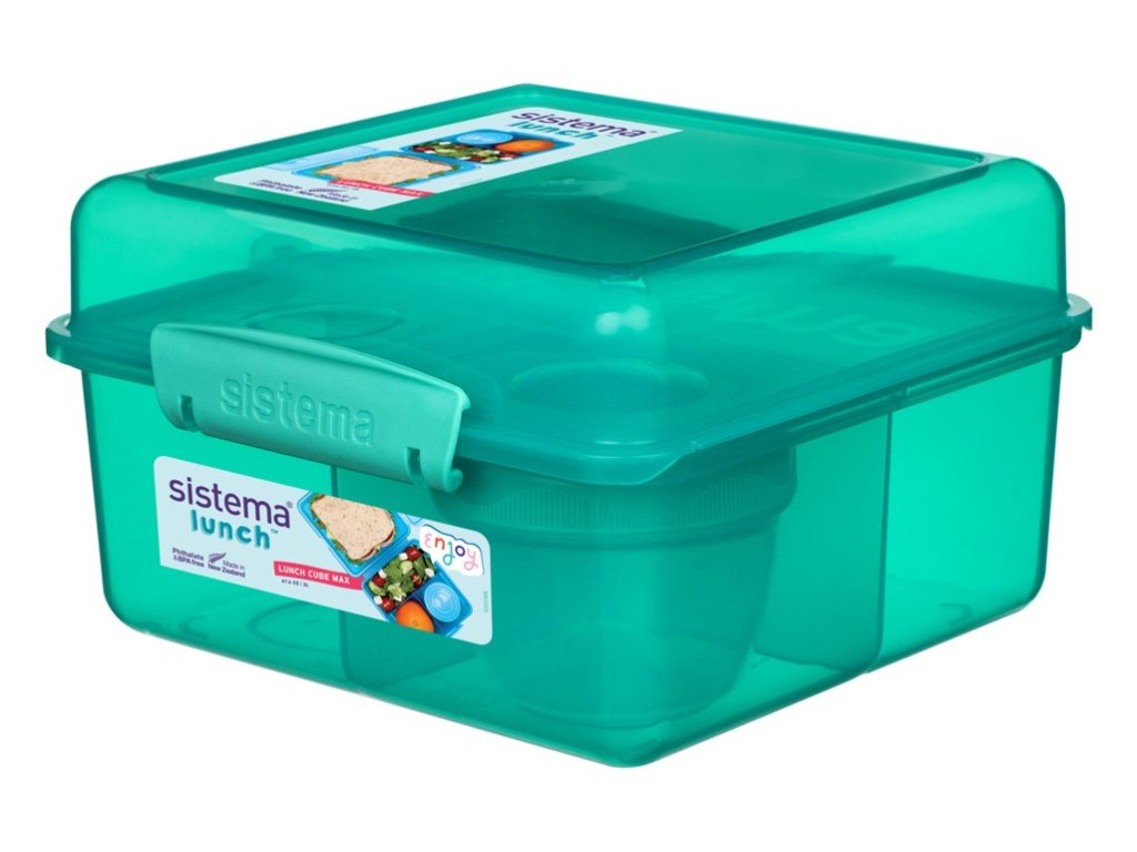 Pudełko na przekąski Sistema Lunch Cube Max z pojemnikiem na jogurt i podwójną pokrywką, 2 l, mieszane kolory