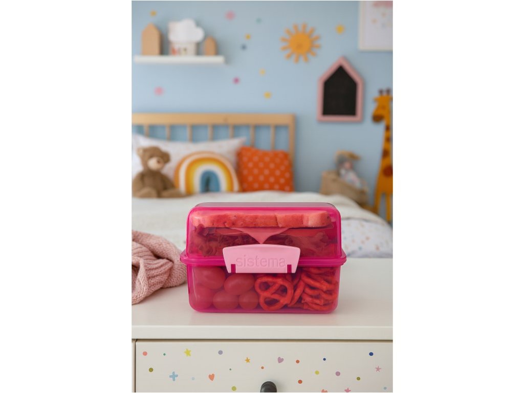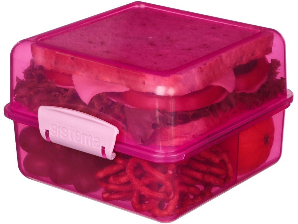 Pudełko na przekąski Sistema Lunch Cube z 2 przegródkami, 1,4 l, różowe