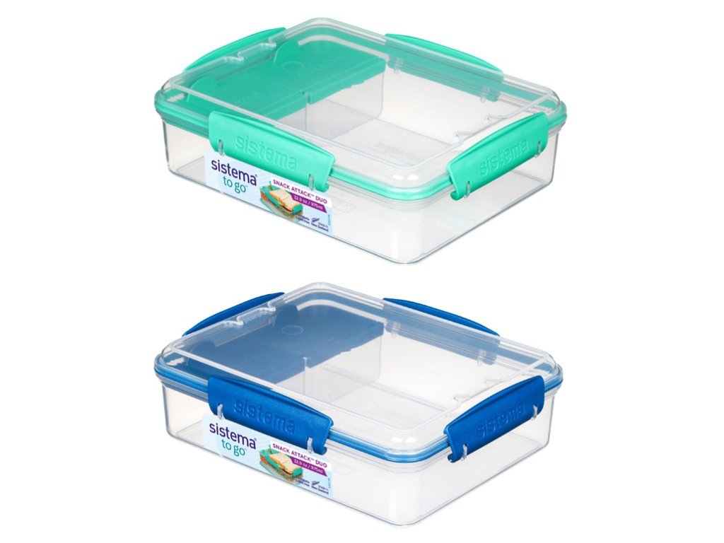 Pudełko na przekąski Sistema To Go Snack Attack Duo z 2 oddzielnymi przegródkami, 975 ml, różne kolory
