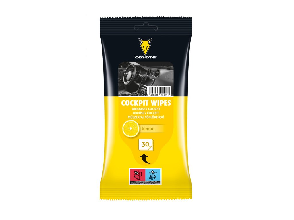 COYOTE - Chusteczki do kokpitu cytrynowe 30 szt. - Chusteczki przeznaczone do czyszczenia wnętrza samochodu. Nie pozostawiają smug. Wnętrze jest pachnące cytryną.Parametry dodatkowe
