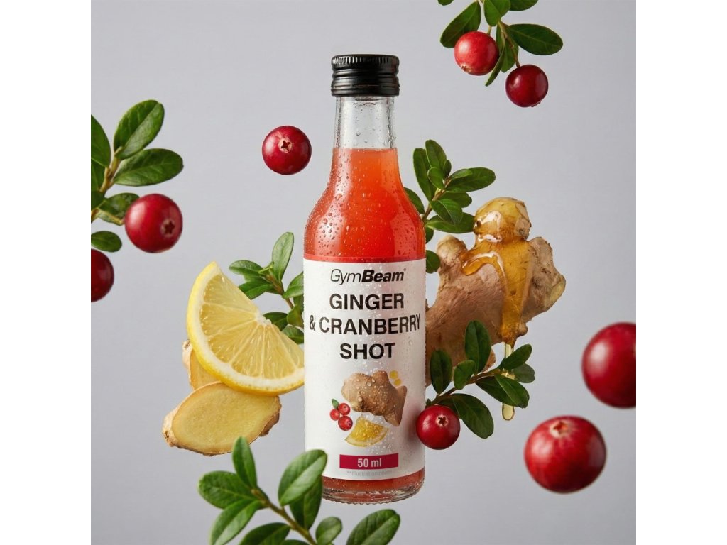 Imbirowy shot z żurawiną to mocny koncentrat dla miłośników wyrazistych smaków. Składa się w 50% z tłoczonego na zimno soku imbirowego , który nadaje mu ostrości. Doskonale uzupełnia go 20% soku żurawinowego , który nadaje lekko gorzkawą nutę. Dodaliśmy również wodę kokosową , aby zmiękczyć smak, i oczywiście miód , który przyjemnie osładza cały shot. Harmonię całości dopełnia lekko kwaskowaty sok cytrynowy .