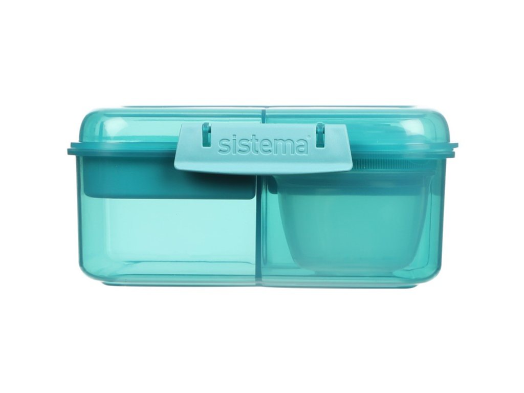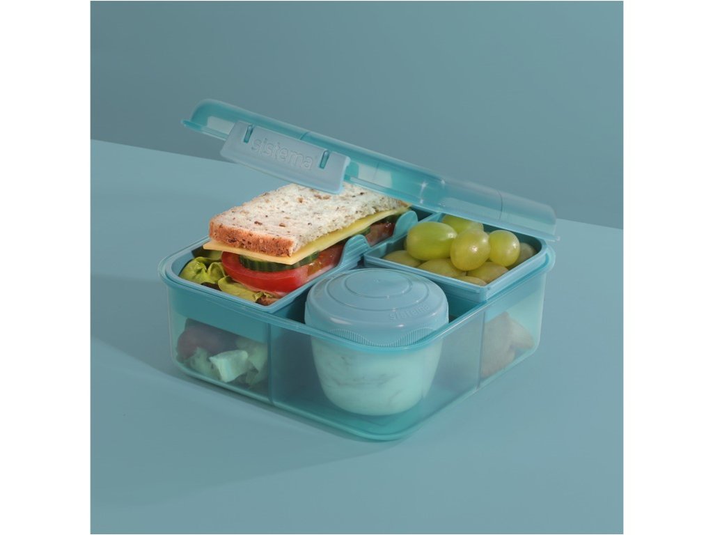 Sistema Divided snack box Ocean Bound Bento Cube z pojemnikiem na jogurt i 2 tackami 1,25 l, miętowy