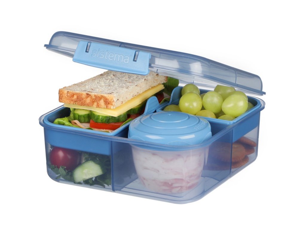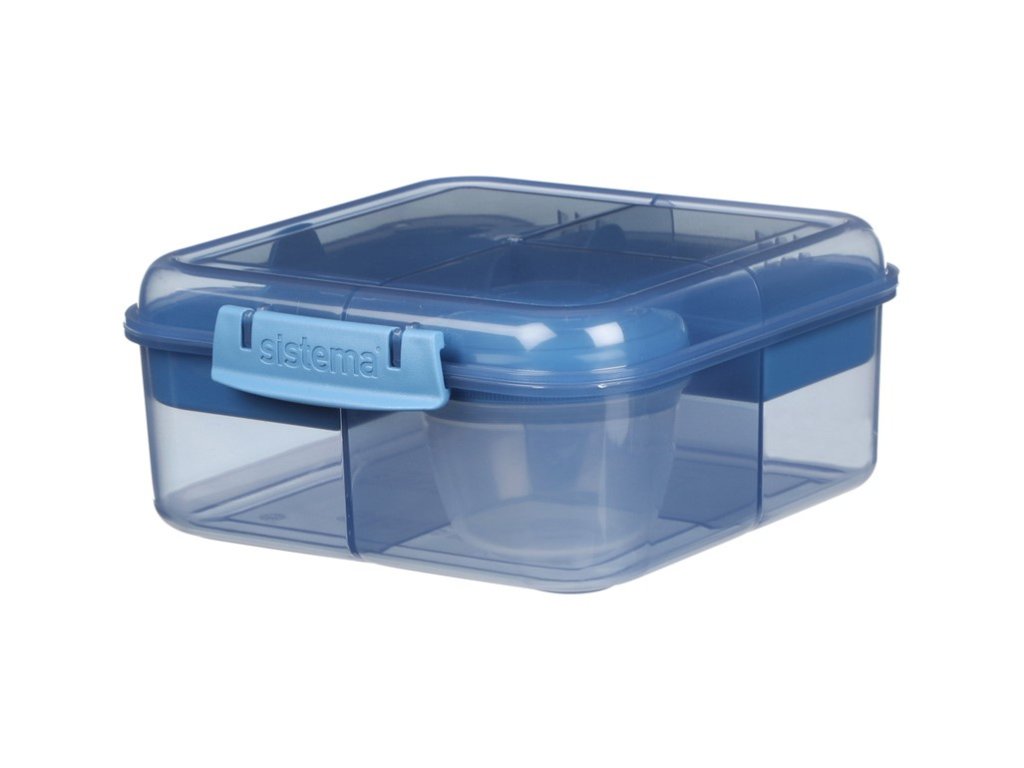 Sistema Divided snack box Ocean Bound Bento Cube z pojemnikiem na jogurt i 2 tackami 1,25 l, mix kolorów