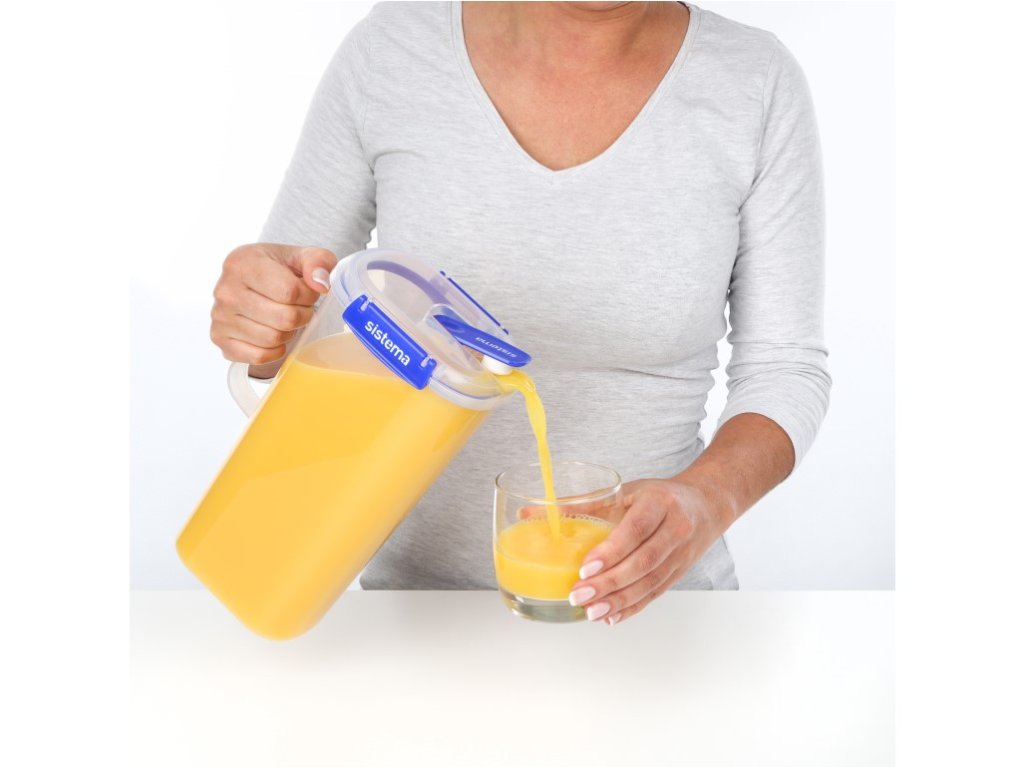 Czajnik Sistema KLIP IT PLUS, Twój towarzysz do przechowywania i serwowania ulubionych napojów. Dzięki pojemności 2 litrów, ten czajnik idealnie nadaje się do codziennego użytku, spotkań rodzinnych lub przygotowywania dużych ilości orzeźwiających napojów, takich jak świeżo wyciskane soki, domowa lemoniada, mrożona herbata czy po prostu woda z owocami. Zalety: • Zamknięcie KLIP IT PLUS z opatentowanymi klipsami • Sistema • 100% szczelność i wodoodporność • Ergonomiczny uchwyt zapewnia wygodne i bezpieczne nalewanie oraz łatwą obsługę, nawet gdy czajnik jest pełnyParametry dodatkowe