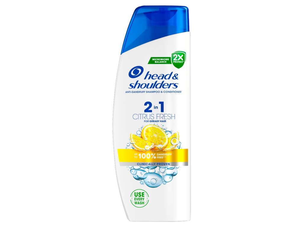 Szampon przeciwłupieżowy Head & Shoulders 2w1 Citrus Fresh, polecany do włosów przetłuszczających się, zwalcza nawet najbardziej uporczywy łupież, jednocześnie utrzymując równowagę mikrobiomu skóry głowy. Jego formuła do codziennego stosowania dostarcza do 2 razy więcej ochronnych substancji czynnych do porów, zapobiegając nawrotom łupieżu, i zawiera do 25% więcej substancji odżywczych niż zwykłe szampony Head & Shoulders.