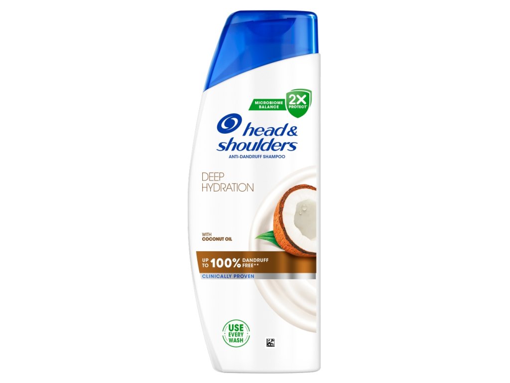 Szampon przeciwłupieżowy Head & Shoulders Deep Hydration, wzbogacony olejem kokosowym, może być stosowany do wszystkich rodzajów włosów i skóry głowy. Jego formuła zwalcza przyczynę łupieżu, jednocześnie utrzymując równowagę mikrobiomu skóry głowy i zapobiegając nawrotom łupieżu.